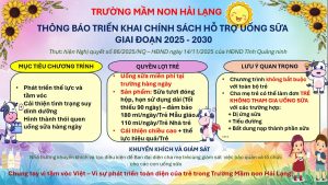 Trường Mầm Non Hải Lạng là nơi ươm mầm sự phát triển toàn diện cho trẻ nhỏ, tập trung vào việc xây dựng nền tảng kỹ năng sống, tư duy sáng tạo và giáo dục ngôn ngữ, giúp trẻ tự tin bước vào những giai đoạn tiếp theo của hành trình học tập.