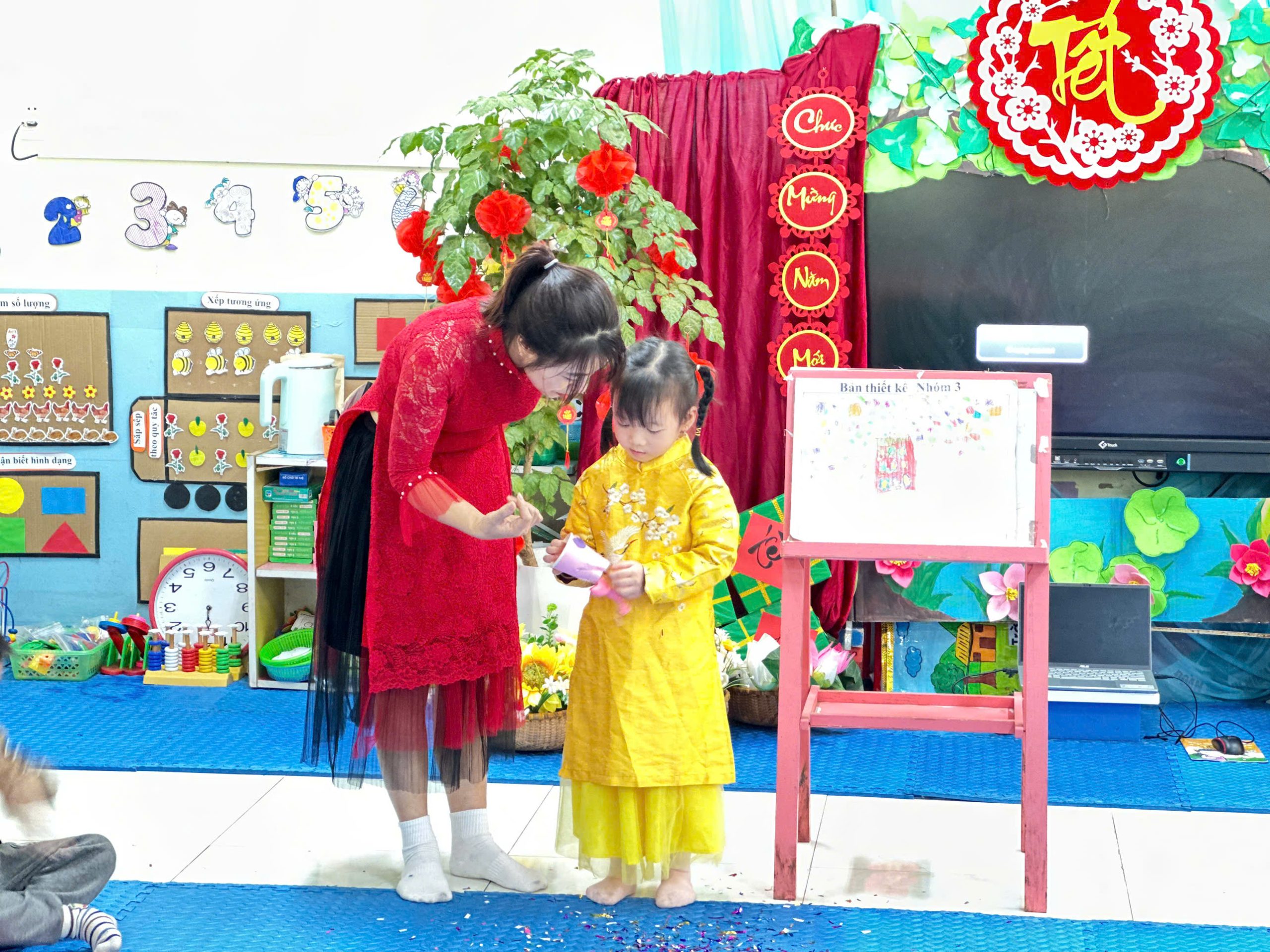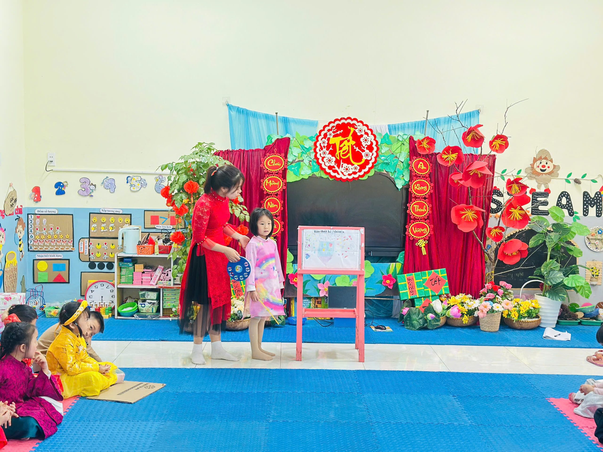 Tiết dạy được xây dựng khoa học theo đúng quy trình EDP, trong đó trẻ được đặt vào tình huống có vấn đề, chủ động suy nghĩ, thảo luận, lập kế hoạch, chế tạo, thử nghiệm và chia sẻ sản phẩm. Không khí lớp học diễn ra sôi nổi, hào hứng; trẻ mạnh dạn nêu ý tưởng, tích cực hợp tác và thể hiện rõ niềm vui khi tự tay tạo ra sản phẩm của mình.