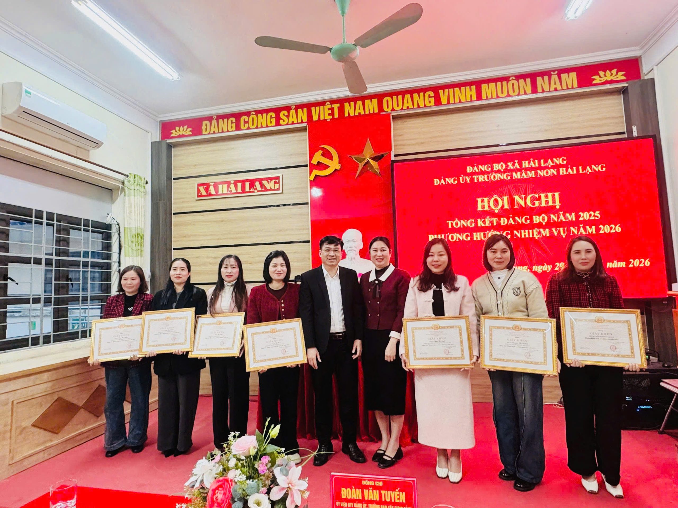 Nhân dịp này, Hội nghị đã khen thưởng 01 tập thể và 06 cá nhân có thành tích tiêu biểu, hoàn thành xuất sắc nhiệm vụ năm 2025. Tập thể được khen thưởng: Chi bộ Mầm non Hải Lạng 03 – tập thể đoàn kết, trách nhiệm, hoàn thành xuất sắc nhiệm vụ năm 2025.